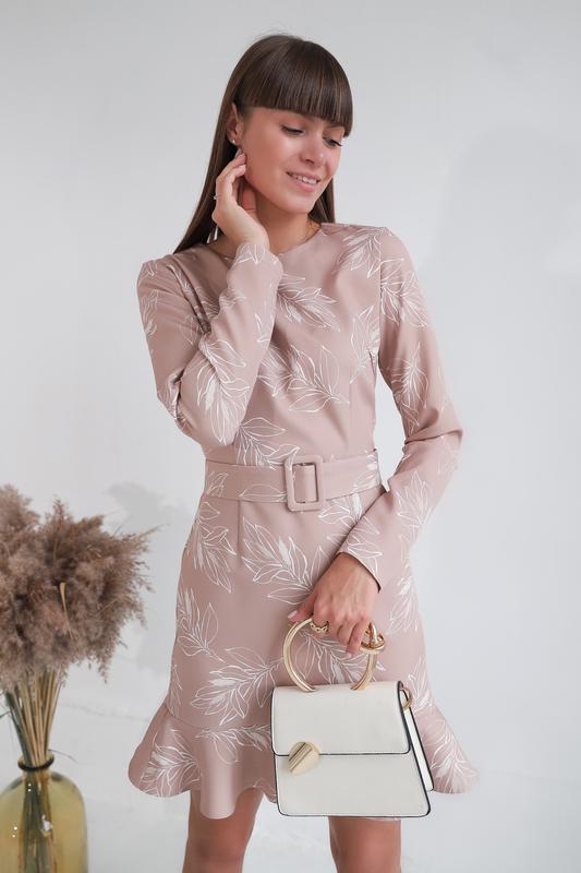 Романтичне бежеву сукню з воланом по подолу Тканина: трикотаж Розмір: XS Виробництво 🇺🇦