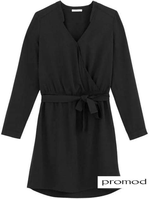Черное базовое платье французского бренда Promod, под пояс, длинный рукав. Новое, с этикеткой. Указана цена 40 швейцарских репортеров. Размер указанный 40: длина 92 см, ПОГ 51 см, ПОТ 42-45 см, ПОС 54 см. Модель очень высокого роста, платье выглядит короче, чем на средний рост, оно чуть выше колена, подойдет на рост до 170 сантиметров.