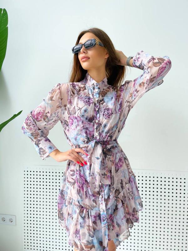 Шикарное платье в нежной цветочной расцветке🔝 Идёт как двойка❣️ Мод:638 Размер: универсал 42-44 Ткань: шифон +трикотаж-масло в виде платья-подкладки Длина 82см Цена 680 грн.