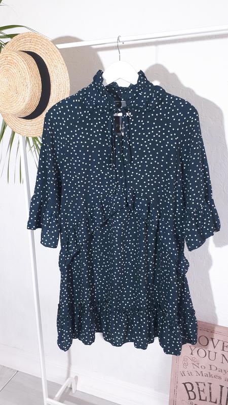 Стильное платье в горошек/платье свободного фасона /платье оверсайз. платье с воланами