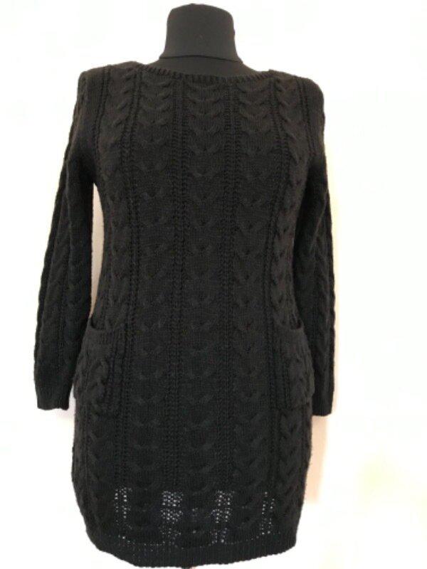 Класна сукня демонстрована на манекені 52 розміру, придбана в Європі, один раз одягнута, 35% шерсті в складі. Довжина- 82см, плечі-43см, рукав від плеча- 59см, пог- 49см, до низу пряма. Спереду є дві кишеньки.