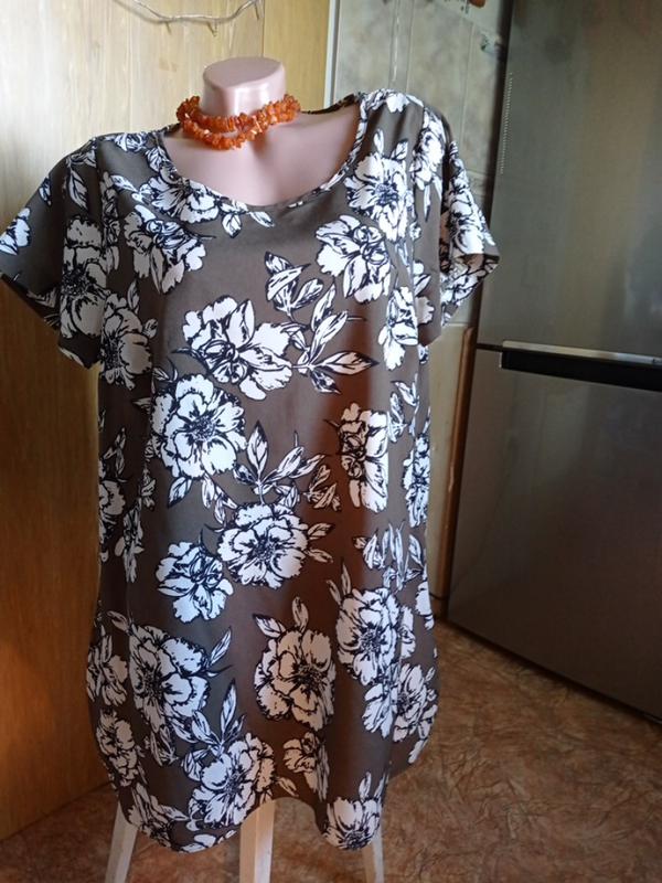 оверсайз платье или блуза большого размера указан европейский 46 наш размер 50 52 (хl,xxl цвет хаки, зелёный длина 78 обхват груди 63. полуобхват по низу 67. ✔️реальное фото! ткань тонкий поліестер