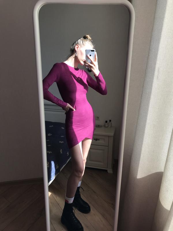 Яркое платье мини, цвет фуксия, на фото видно как выглядит при разном освещении. Идеально садится по фигуре, ткань очень мягкая приятная к телу, под замш. Есть потайная змейка сбоку, видно на фото в карусели. Размер S, ткань тянется. Замеры: Длина по спине - 85 см Длина впереди по самой короткой точке - 72 см Плечи - 35 см Полуобхват груди - 37 см Полуобхват бедра 38 см Рукав - 58 см Цена - 350 грн Тренч и ботинки тоже в продаже;)