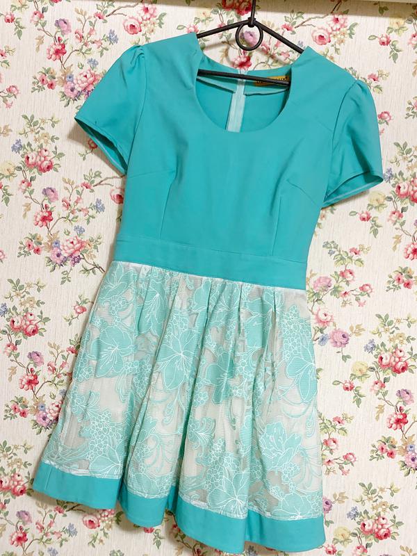 Платье бирюзового цвета. Одевалось только раз, никаких дефектов нету. Подходить на размер 42-43 (S или M) В комплекте к платью идёт пояс.