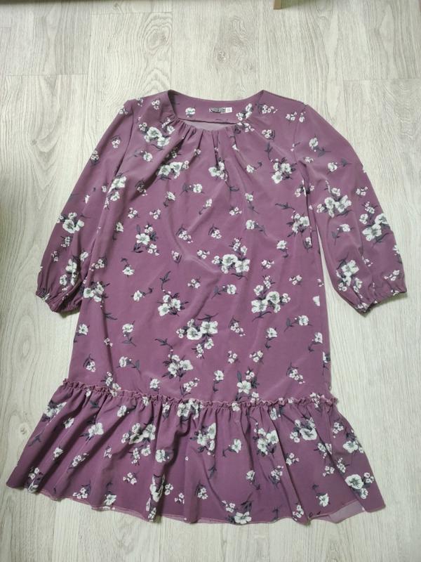 Зручне плаття, приємного забарвлення. Рукав 3/4, в комплекті є поясок, з тієї ж тканини, що і плаття, але я носила без нього. Назва тканини не знаю, схожа на щільний шифон, не тягнеться особливо, Стан відмінний, одягнене 2 рази. Заміри: плечі-40, рукав -46, довжина 86