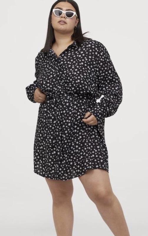🖤🤍🖤Н&М🖤🤍🖤 Короткое платье-рубашка из вискозной ткани с набивным рисунком. Воротник и потайная застежка спереди. Съемный пояс на талии. Длинные рукава с узкими манжетами на застежке. Кокетка сзади. Слегка круглий нижний край🖤🤍 СоставВискоза 100%🖤🤍 Размер XXL🖤🤍