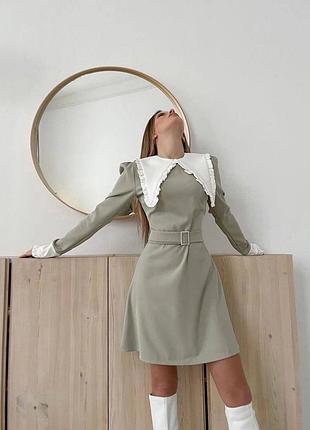 Сукня Мод 042АМ Розмір: 42-44, 46-48, Колір: чорний, оливка Тканина: костюмка, манжети і комір котон