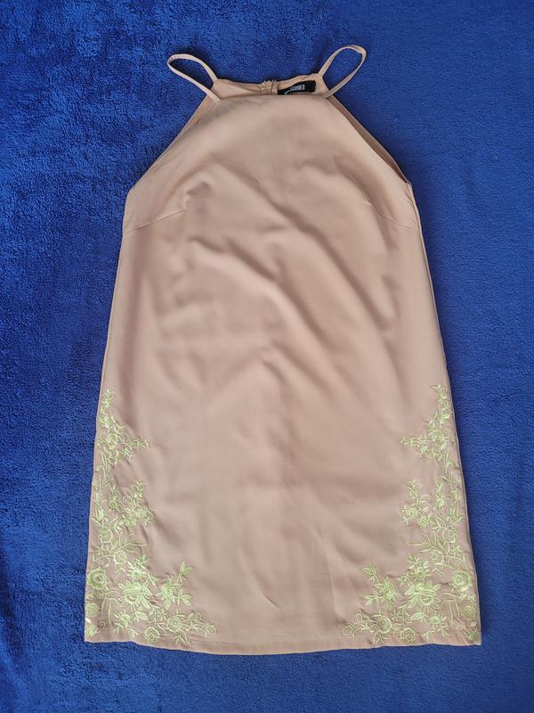 сукня ніжно персикового кольору. Бренд MISSGUIDED. Прямий крій,довжина міні,застібається ззаді довгою моднією, тоненькі брителі. До сукні є підкладка, з боків якісна вишивка гладдю, тримає форму за рахунок якісної матерії. фото всіх деталей додаю