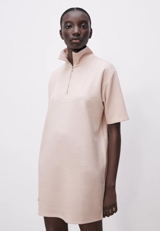 Красивое ,мягкое платье в рубчик со стоячим воротом Размер S/M