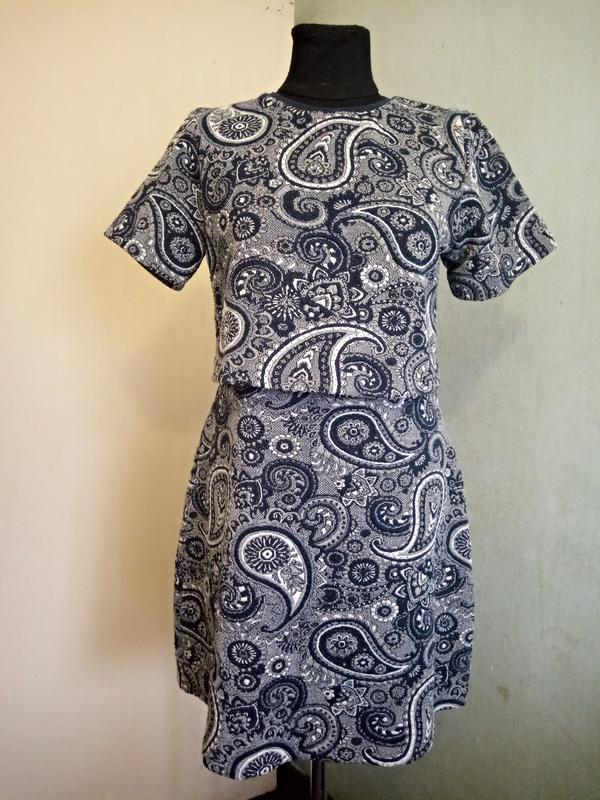 Платье OASIS ,в идеальном состоянии. Структура ткани жаккард. Без затяжек, катышков и дыр. Платье визуально выглядит как костюм. Длинна изделия 91 см, ширина по плечам 40 см, длина рукава 21 см, ширина рукава 40 см, ширина под мышками 100 см, ширина по талии 84 см, ширина по бёдрам 106 см,