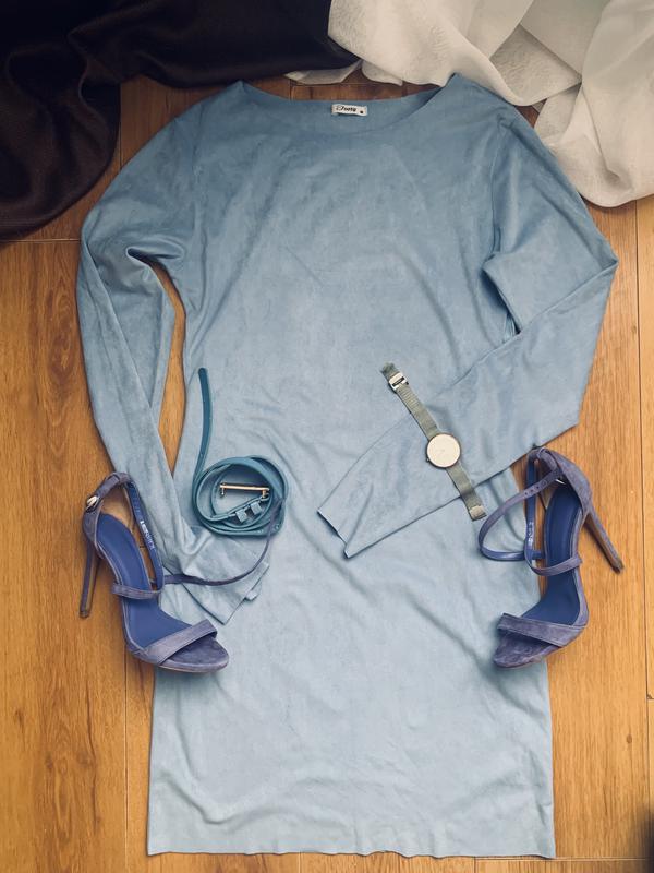 Платье велюр небесного цвета, до колена, размер S/M
