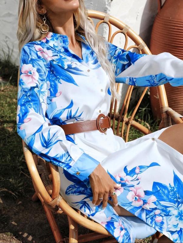 Елегантне плаття-сорочка з квітковим принтом , ремінець йде в комплекті з платтям Колір : білий Склад : 100% поліестер Розмір : M,L Виміри : M - довжина 111 см, плечі 40 см, бюст 102 см, в бедрах 110 см, рукав 60 см L - довжина 112.5 см, плечі 41.5 см, бюст 108 см, в бедрах 116 см, рукав 61.5 див. Нова колекція ! Привезене з США 🇺🇸 Плаття упаковано з фірмовий пакет