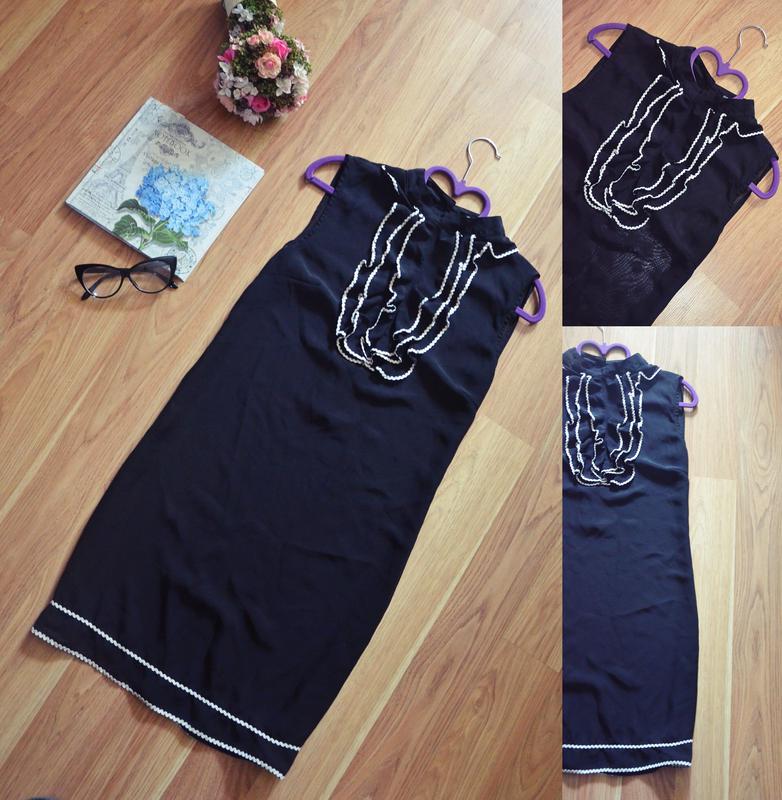Лёгкое чёрное платье с красивым жабо,размер с-м