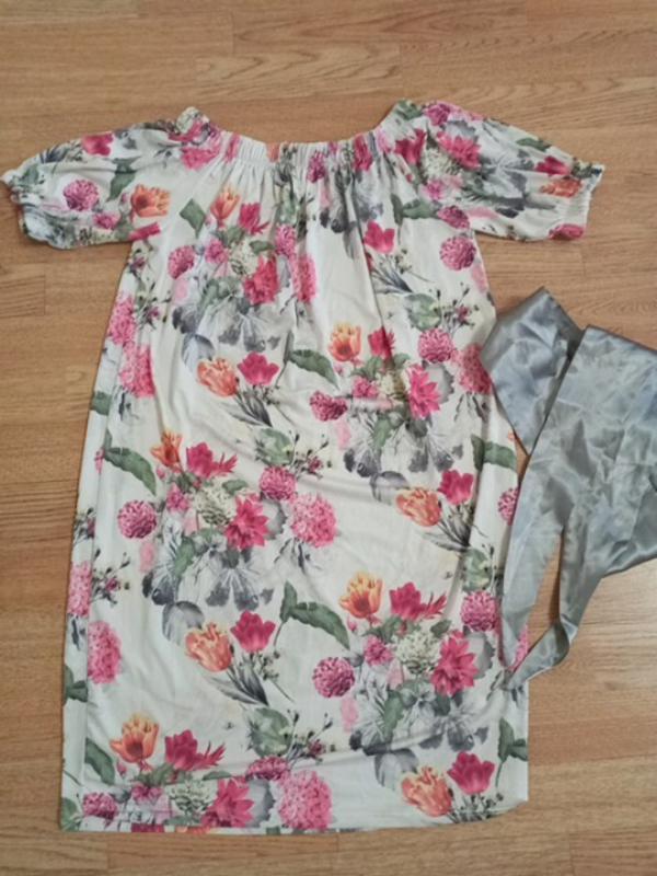 Продаю платье. Отличное состояние. Ткань очень хорошо тянется. Можно носить с поясом и без. Сверху и на манжетах плотная резинка. Длина По Спинке 77 см, ширина по груди 50 см.