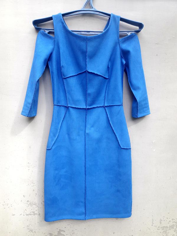Приталена і приємна на дотик сукня, тканина ніби замш, рукав 3/4, пог - 37, пот - 33, поб - 44. Тянеться. Мені, нажаль, вже не по розміру(((, тож шукаю нову власницю)))