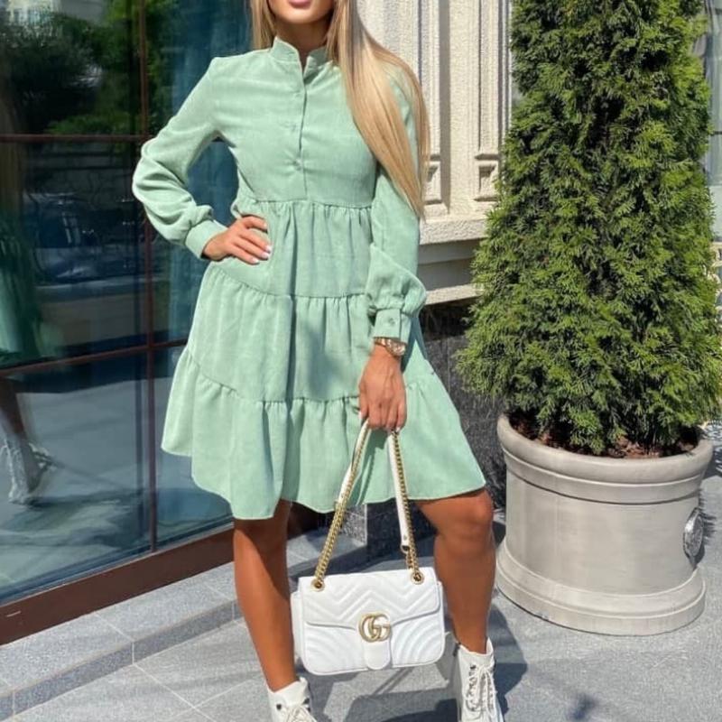 #Платье Артикул: 584-338 Цвет: бежевый, чёрный, изумруд, шоколад, марсала, синий, серый, лаванда, фисташка Размеры: S, M, L, XL Материал: вельвет (тёплый, идеально на прохладную погоду) Фото Реал