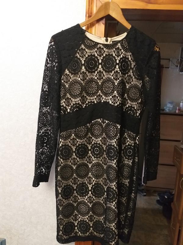 Красивое нарядное кружевное платье, длина 93, ПОТ 43, ПОБ 48, рукав от горловины 73, сзади застегивается на молнии . Одевалась один раз.