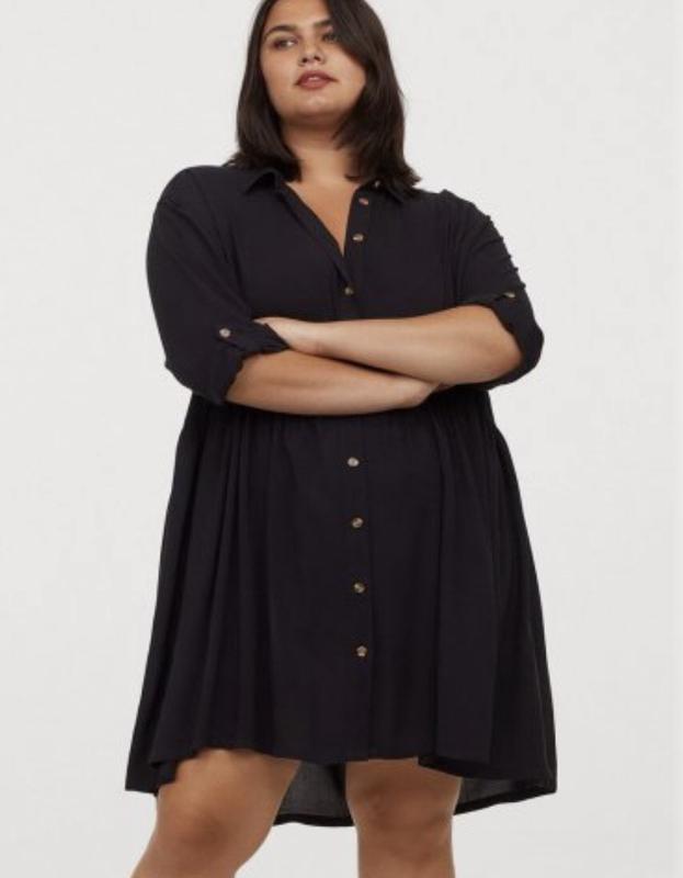 🖤🖤🖤Н&М🖤🖤🖤 Короткое платье из воздушной ткани с отложным воротником и застежкой спереди. Слегка заниженная линия плеча и длинные рукава, которые можно закатать и закрепить на хлястик и пуговицу. Отрезная талия на сборке. Широкая юбка с мягким эффектом драпировки. Без подкладки🖤