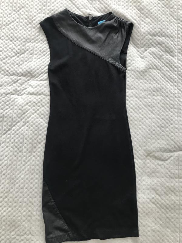 Міні-плаття,облягаюче,з елементами шкіри,ззаду спинка в сіточку,трішки є затягнення,видно на останньому фото