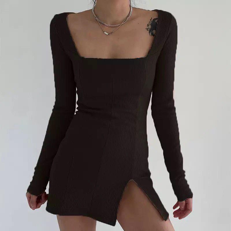 Сукня рубчик квадратний виріз декольте вінтаж коротке чорне розріз виріз спереду