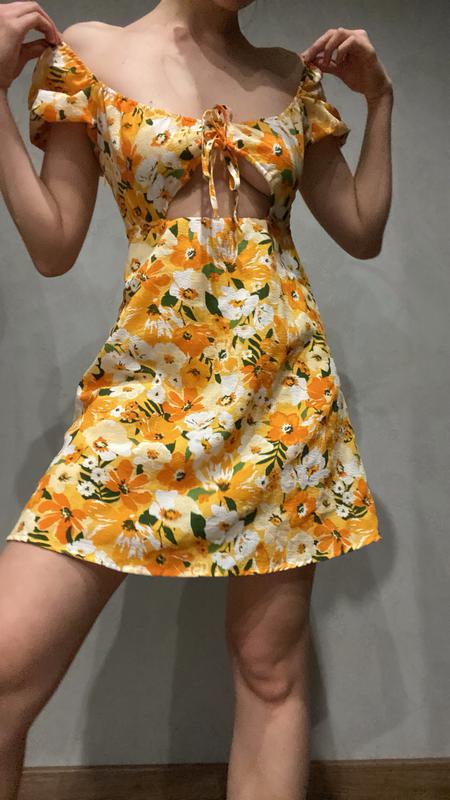 Дуже сексуальна літня сукня з простої, легкої тканини. На літню погоду - як раз. На грудях на зав'язки. Збоку блискавка. Стан ідеальний, 10/10. Можна носити завʼязками спереду, так і ззаду (як я робила, видно на фото). Заміри: довжина - 64, ПОТ - 32-34 (за рахунок гумки на талії).