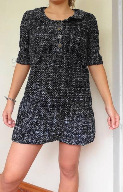 Просто бомбезное платье. Низ платья на резинке и чуть загибается, образуя волан по подолу. Ткань мягенькая плюшка, чередуясь с прозрачной, образует шахматку - соту.. Рукав на резинке манжете, на которую заворачивается манжет, образуя так же волан, как и на подоле. Пуговицы металлические. Будете в этом платье просто шикарны. Уверена что останетесь довольны покупкой. На бирке размер маркирован М, но на М он маловат.... Модель 36-го размера. Замеры: плечи 36 под мышками 34 см талия 43 см длина с подогнутым подолом 82 см рукав с загибом 32 см