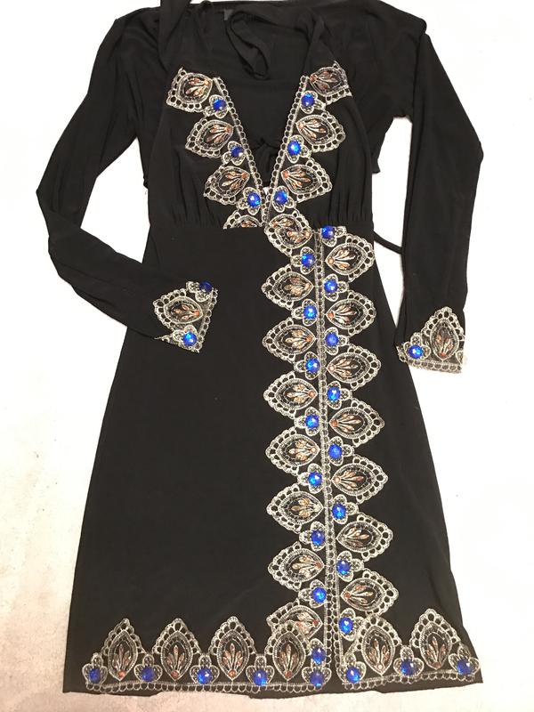 Дефектов нет. Пойдёт на размер 44-46. Тянется. Можно носить отдельно. Камни пришиты, вышивка золотой нитью.