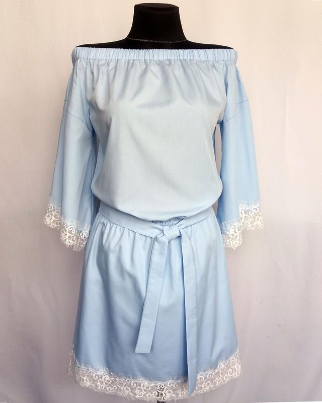 Стильное платье. Отличное качество пошива и материала. Оригинальная моделька с кружевной отделкой. Приспущенная линия плечей на резинке, пояс резинка. Приятная котоновая ткань. Имеется поясок. Новые вещи, в наличии!!! Суперцена!!! Только реальные фото, личные!!! Размер не указан, подойдет на наш 42-44 Состав: 75% котон, 20% полиэстер, 5% эластан Отличное качество Много женской одежды и сумок, смотрите другие мои объявления http://shafa.ua/member/anna_rusynka/clothes Оплата на карту Приватбанка. Отправка Укрпочтой, Новой почтой. Возврат не предусмотрен, возможность замены/возврата оговаривается до покупки