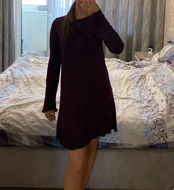Вязаное платье красивого насыщенного цвета, хоть оно и тоненькое но под пальто отлично будет на прохладную осеннюю погоду. У него красивые расклешенные рукава. Ткань очень приятная к телу(состав не знаю, т.к. бирку обрезала) Платье в хорошем состоянии, продаю потому что маловато мне в плечах и груди