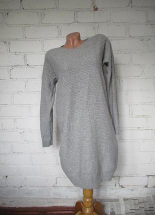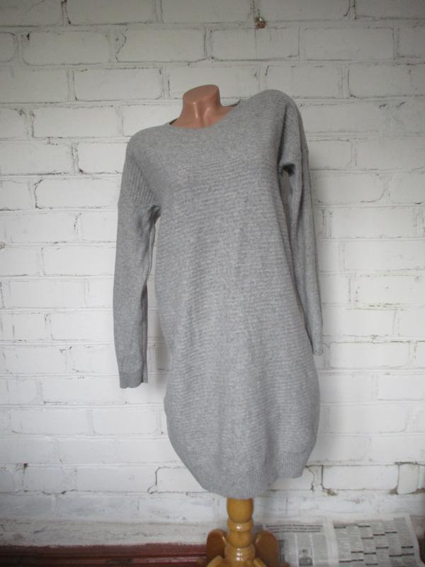 Стильное платье серого цвета, мягкое, теплое. Есть пару зашитых дырочек на спине (8,9,10 фото) - не видно. Длина от плеча 90 см, ПОГ 54 см, плечи 59 см, рукав от плеча 48 см. 100% предоплата на карту ПриватБанка, доставка за счёт покупателя