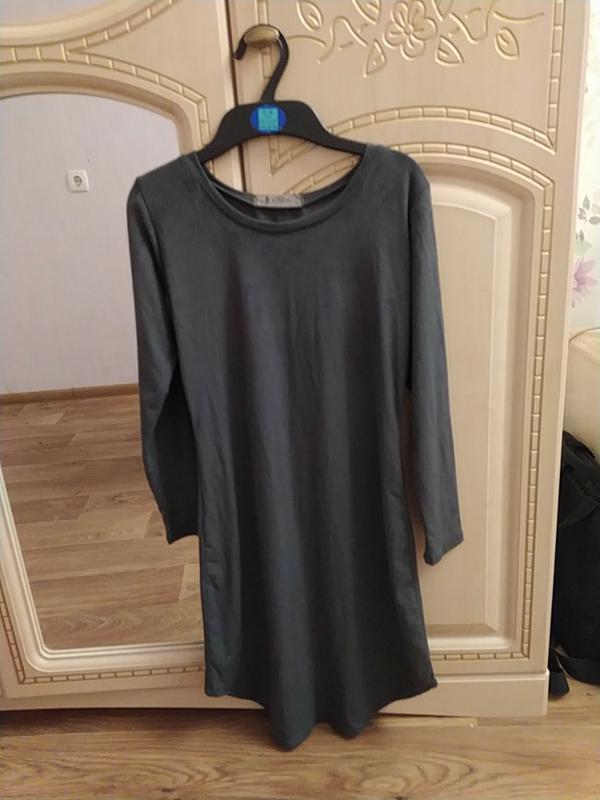 Сукня маленького розміру по фігурі. Тканина як тоненька замша, тягнеться Довжина-82см ПОГ-38см ПОТ-33см Рукав-54см Плече-8см