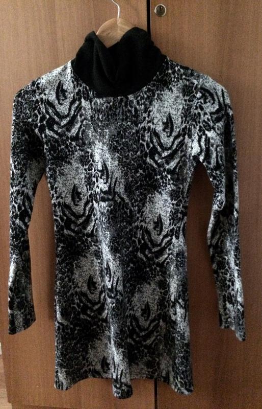 Горлышко стойка, сама ткань плотная и хорошо держит форму скрывает недостатки) бирку отрезала, но покупала себе на размер s (36) . Было одето максимум пару раз!