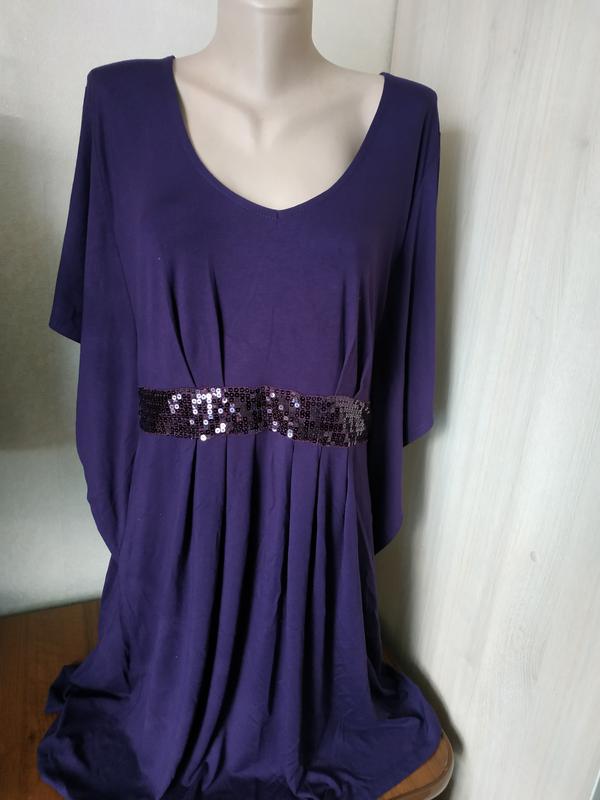 Класно сидить по фігурі Тканина якісна, гарно спадає Заміри : Довжина 96см Пів об'єм по грудях 47см. Тягнеться до 50-55см Пів об'єм по талії 42 ( завищена талія) Пів об'єм по стегнах 65см