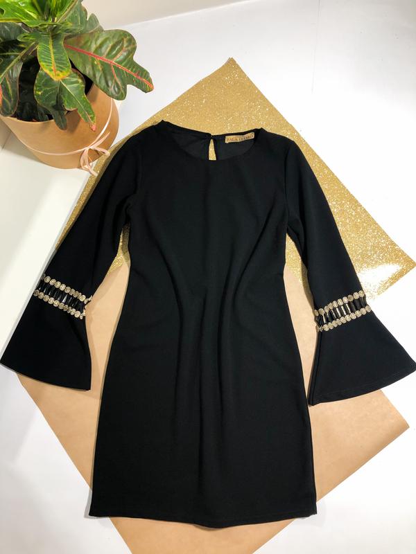 Платье чёрное с красивыми рукавами . Состояние идеальное Размер S-M Замеры Грудь 44 Талия 43 Бёдра 48 Длина рукава 58 Длина 85