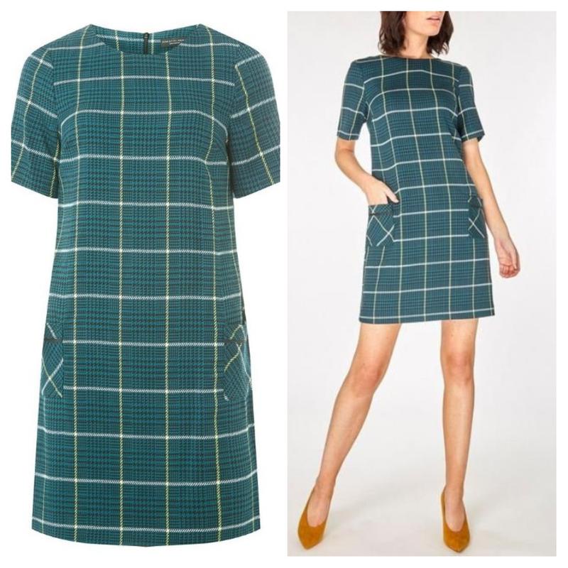 Клетчатое плотное платье трапеция, достаточно теплое, в холодное время года идеально как 2-й слой. Размер указан 16: длина 92 см, ПОГ 55 см., ПОТ 55 см, ПОБ 60 см Практичный состав, не мнется, не электризуется, вискоза придает мягкость: 83% полиэстер 16% вискоза 1% эластан Сток, в идеале, без бумажных этикеток.