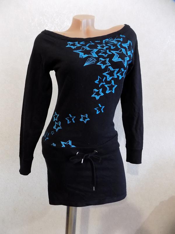ПОДПИСЫВАЙТЕСЬ!!! И НЕ ПРОПУСТИТЕ НОВИНКИ!!! Смотрите все мои товары, большой выбор, низкие цены!!! Платье-туника черное плотное со звездами, размер 42-44. В отличном состоянии, без дефектов. Состав: 80% коттон, 20% полиэстр. Длина изделия 75 см. Длина рукава от ворота 60 см. Рукава 3/4. Рукав-реглан. Полуобхват груди 40 см + тянется до 46 см. Полуобхват талии 37 см + тянется до 43 см. Полуобхват бёдер 43 см + тянется до 49 см. Смотрите весь ассортимент, огромный выбор, низкие цены!!! НОВИНКИ каждый день!!! Отправка ежедневно!!! Доставка УкрПочтой и Новой Почтой. Только самые продвинутые знают, как одеваться модно и недорого при минимуме денег и выглядеть на все 100%. Приятных покупок!!! Мы на Шафе, Весь ассортимент по супер низким ценам: http://shafa.ua/member/fabrikaodevaika