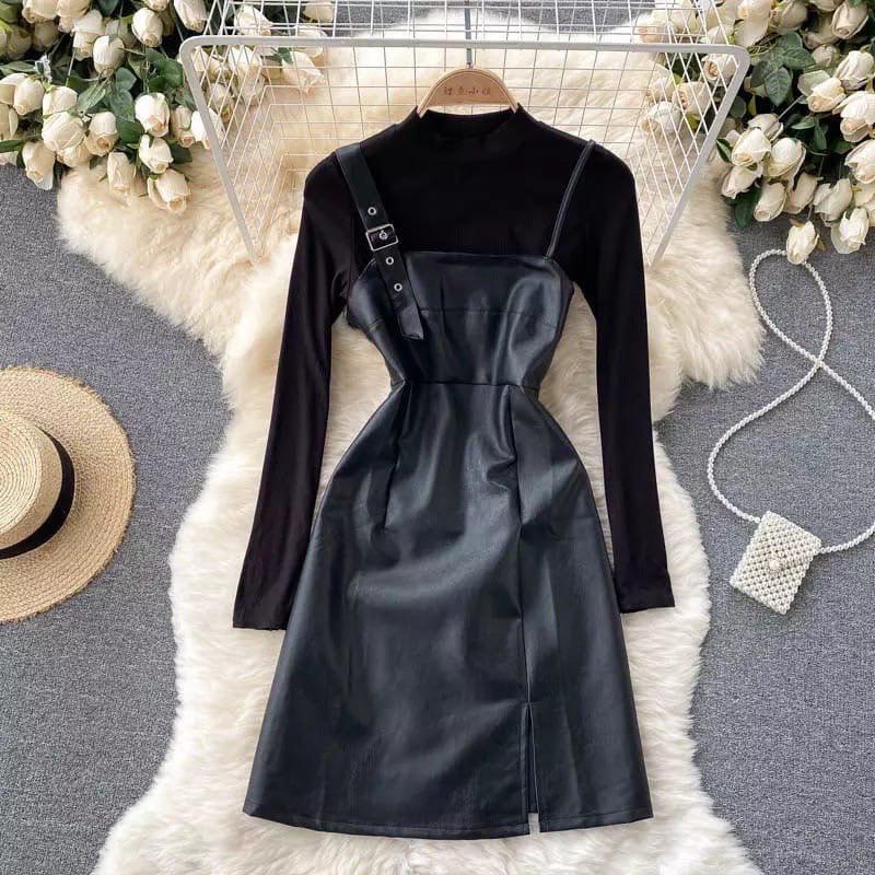 Новинка ❤️ Костюм 2-ка (сарафан+гольф) Модель: nk 7094 Размеры: 42-44, 46-48 Ткань: сарафан -эко-кожа, гольф - трикотаж рубчик Цвета: чёрный Костюм двойка состоит из сарафана и гольфа! Сарафан застёгивается на змейку, впереди разрез . Гольф на рукавах декорирован пуговицами