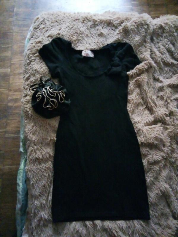 В идеальном состоянии платье черного цвета из плотной ткани с бантом на рукаве. Made in Portugal. Очень нарядно выглядит. По замерам, спрашивайте.