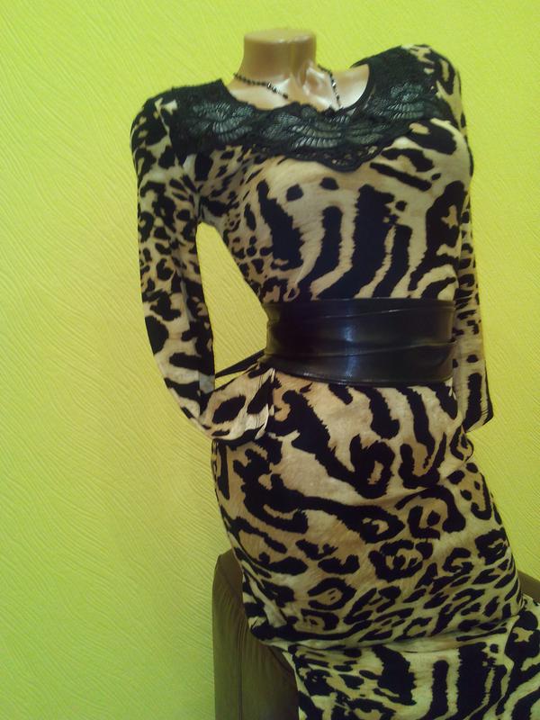 Шикарное платье леопардовый принт,кружево,кожа р42