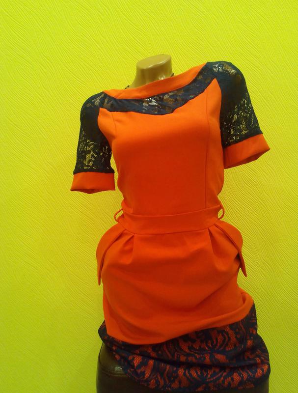 Распродажа красивых платьев. Все вещи новые, хорошего качества, не шивпотреб! Вещи будут носиться долго, не теряя при этом своего первоначального великолепного вида. Практически все платья Турецкого производства! Некоторые украинского производства. Цены снижены. Состояние - на фото. Предлагаю Вашему вниманию великолепное платье кораллового цвета с кружевными вставками! Новое, с биркой. Платье декорировано вставками из кружева темно-синего цвета на груди, рукавах и по низу изделия, а также врезными манжетными карманами на бедрах. Застегивается на спине за счет скрытой молнии в тон платью. Силуэт платья - приталенный, тюльпан. Платьице можно носить как с поясом, так и без него. По бокам имеются шлейки для тонкого пояса. Пояса в комплекте нет. Платье очень выгодно подчеркивает все достоинства женской фигуры. Производитель - ТУРЦИЯ. Размер указан на бирке S-42. Данное платье подойдет на стройную и изящную девушку. Но всегда сверяйтесь по замерам изделия, так как указанный размер на бирке не всегда соответствует реальному. ЗАМЕРЫ ПЛАТЬЯ: Пог (отподмышки до подмышки) - 39 см. Пот - 32 см Поб - 48 см длина изделия от плеча - 94 см. длина рукава от плеча - 23 Ткань еще немного тянется!