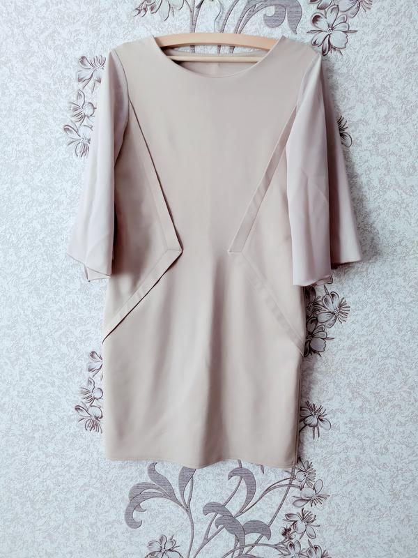 Трикотажне плаття з шифоновим рукавом.В ідеальному стані Довжина 92 ПОГ 47 ПІТ 43 ПОБІДИ 48 Заміри зроблені в спокійному стані за рахунок тканини трохи тягнеться