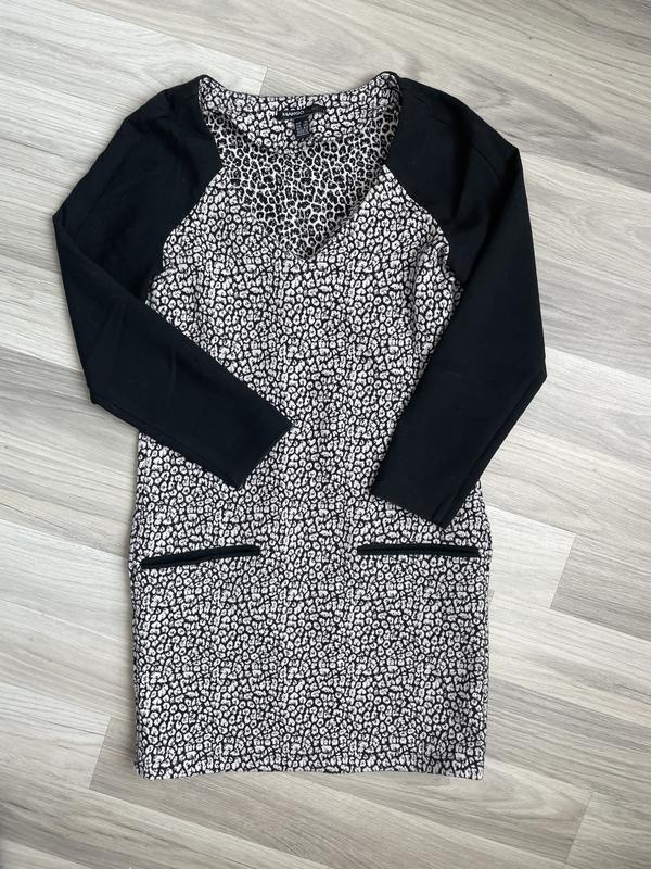 Актуальное платье с животным принтом. Плотная ткань. Рукав 3/4, длина 80 см.