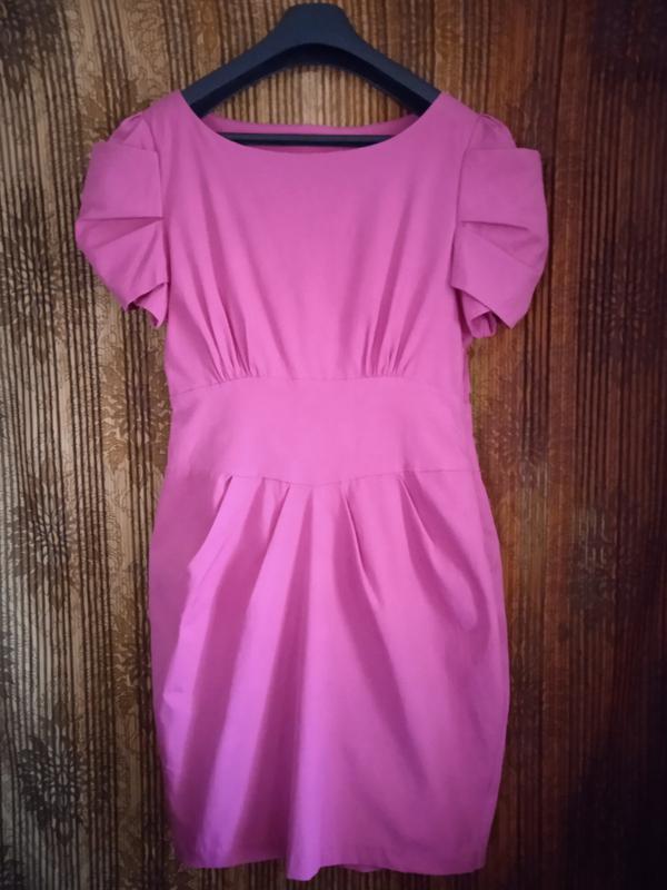Сукня від atmosphere в красивому колір фуксія дуже жіночного силуету. Оригінальне оформлення рукави, спідниця на підкладці, є бічна блискавка. Розмір: UK 14. Склад: 50% бавовна, 48% нейлон, 2% еластан, підкладка: поліестер. Заміри: Пог 45 см, Пот 38,5 см, Довжина 86 см, Спинка від плеча до плеча 36 см, Довжина спинки до талії 40 див. Стан дуже хороший.