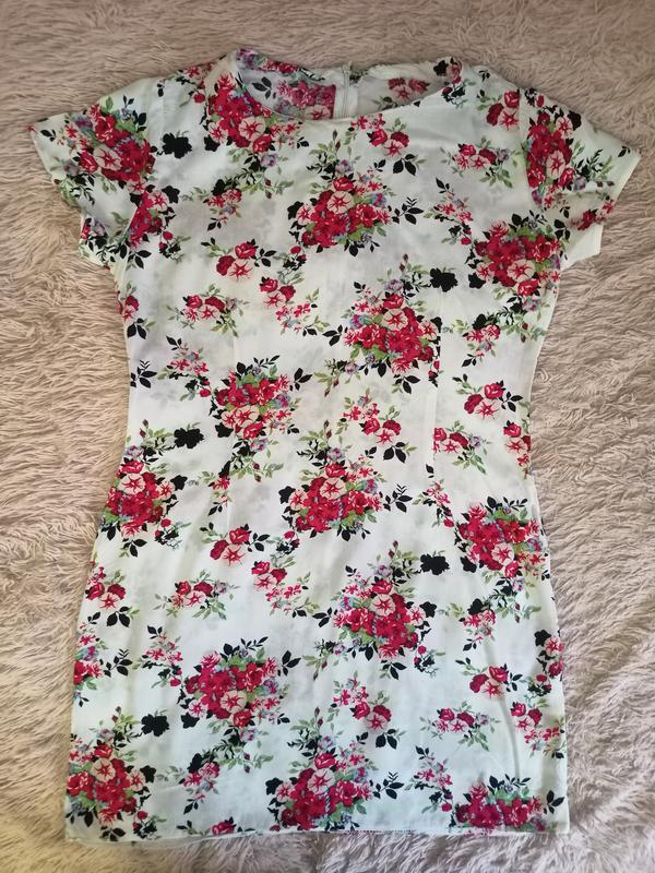 Сукня коротка, біла з квітковим візерунок, приємна тканина. ПОГ - 50 см., ПОТ - 42 см., ПОБ - 52 см., довжина - 80 см.