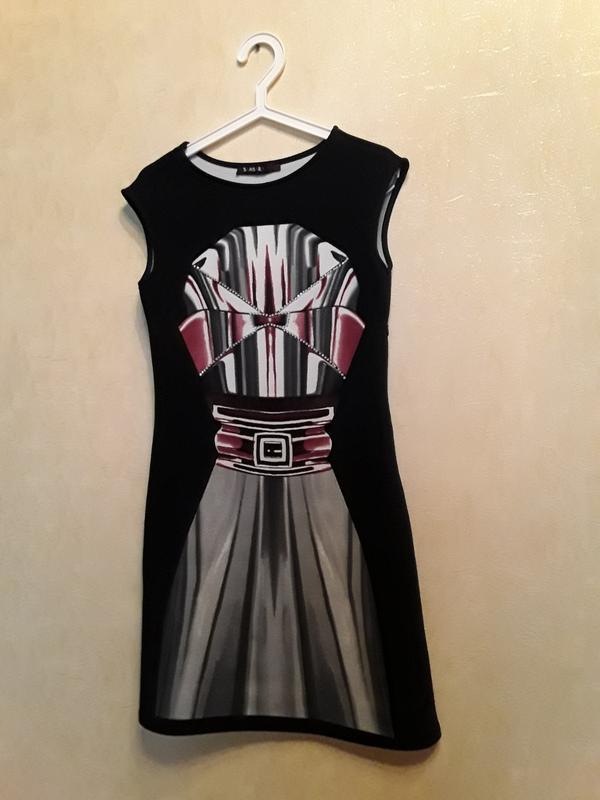 Крутое стильное платье - отлично сядет на девушку размера С, М и подойдет как на праздник, торжество, свидание так и на каждый день! Осенью и зимой можно носить с водолазкой, сеткой. Красиво принт придает фигуре стройность. Покупала за 1200 грн Одето 2 раза, состоянии отличное. Фирма другая. Длина 88 см, ширина подмышками 42 см.