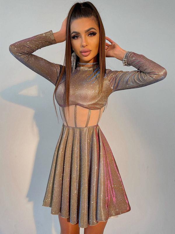 Приталенное блестящее платье с корсетной вставкой и пышной юбкой-солцем ▫️ткань: люрекс ▫️размер: S и М