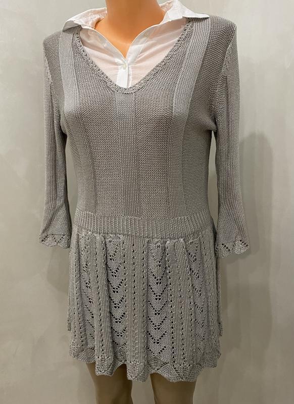 Уникальное мини платье заводской вязки по фигуре/ Фото на теле нет Фото на маникене Рукава трёхчетвертные слегка клёш Вырез v-образный На талии манжета средней ширины Плятье заводской вязки Тянется Подойдёт на с м европейский-ориентируйтесь по замерам Продаётся без возврата и без притензий) Длина 79 см) Плечи 38,5 см) Пог 43 см) Пот 34,5 см) Поб 53 см) Снизу 63,5 см) Рукав 44 см) Рубашка к примеру (не продаётся)