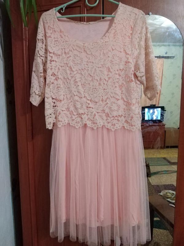 Ніжно персикове плаття. Зверху гіпюр, знизу фатін. На тілі не відчуваєш . Плаття для ніжної дівчини. Одівала 3рази.Плаття без дефектів в ідеальному стані.