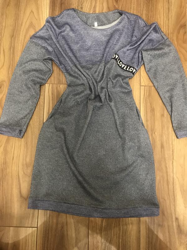 48 розмір. Ходила в ньому як була вагітна. Пряме, дуже приємне до тіла. Тягнеться, є кишені. Стан ідеальний.