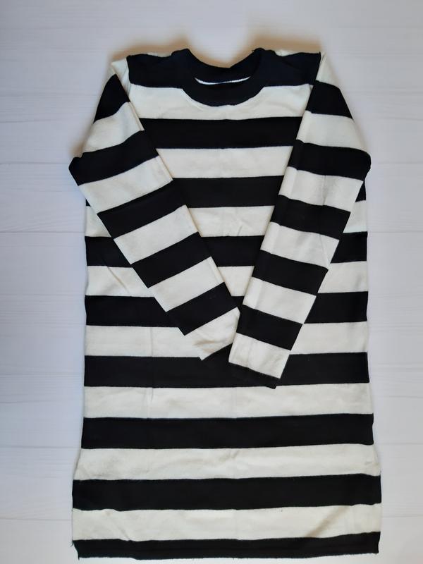 трикотажное платье туника в полоску, по бокам есть разрезики состоянии хорошее, из нюансов- маленькое пятнышко, дополнительно отстирать не пыталась, но думаю легко удалить при помощи мыльных средств размер s-m длина 82,5 см рукав 55,5 см плечи 31 ПО груди 45 см если возникнут дополнительные вопросы обязательно обращайтесь